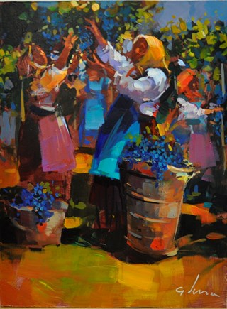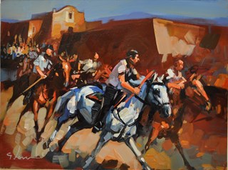 Il suo modo di dipingere, le sue luci, sono già inconfondibili.Il suo stile è di grande effetto,con pennellate sicure e con un'esplosione di colori caldi tipiche delle sue origine sarde.